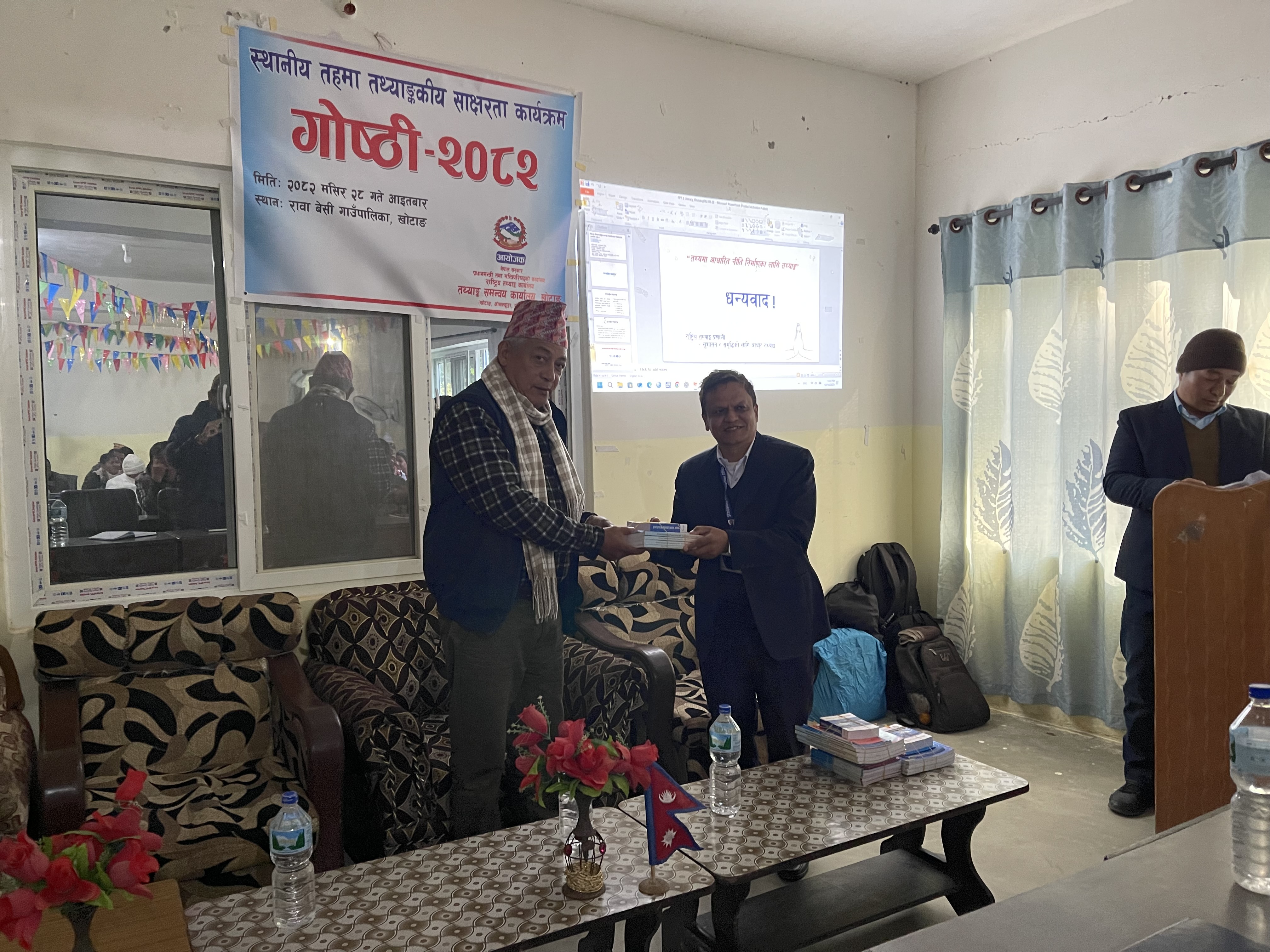 आर्थिक वर्ष २०८२/८३ को कार्यक्रमअन्तर्गत रावा बेसी गाउँपालीकामा २०८२ साल मंसिर २८ गते स्थानीय तहमा तथ्याङ्कीय साक्षरता कार्यक्रम सम्पन्न भयो।